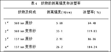4. 變形紗織物的涂塑率和剝離強度