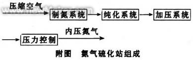 制氮系統(tǒng)由過濾器、加熱器、流量調(diào)節(jié)和純度保證系統(tǒng)組成。來自于空壓機的壓縮空氣經(jīng)過過濾、加熱輸送至膜片分離器(半滲透聚合物膜片)后,氧氣和水蒸氣即被除去,干燥的氮氣即被制成。系統(tǒng)通過位于分離器下游的流量調(diào)節(jié)閱調(diào)節(jié)氮氣氣體流量來控制氮氣的純度,通過壓力調(diào)節(jié)閥來保持系統(tǒng)操作壓力的穩(wěn)定。
