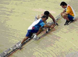 (3)基層處理關(guān):按前述將跑道基層清理、打磨平整。