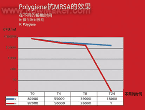 MRSA在最新的抗生素條件下也可以存活,即便使用最徹底的清潔程序來消除它也是一件十分困難的事情,但是由PolygieneTM制作的成型產品可以在數小時內殺滅該病菌。年初出版的米蘭大學微生物系的實驗報告顯示,包含MRSA的細菌培養物在被放置在PolygieneTM成型板材上后24小時內病菌就被殺滅,而放在消毒板上同樣細菌培養物中的MRSA病菌卻依舊存活。