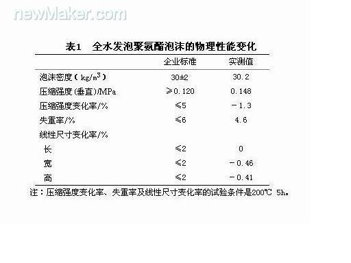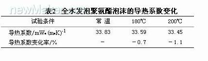 表2數據說明,聚氨酯全水發泡體系的泡沫經高溫老化后,導熱系數變化很小。