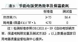 從表3可看出,保溫節能電飯煲的熱效率及保溫能耗完全合格。