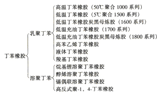 丁苯橡膠是最早工業化的合成橡膠。目前丁苯橡膠(包括膠乳)約占合成橡膠總產量的55%,約占天然橡膠和合成橡膠總產量的34%,是產量和消耗量最大的合成橡膠膠種。丁苯橡膠是丁二烯和苯乙烯的共聚物,其中丁二烯可以順式-1,4結構,反式-l,4結構和1,2結構存在于分子鏈中。聚合方法有乳聚和溶聚兩種。主要品種如下圖所示: