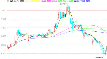 圖3 大連PVC日K線走勢(shì)圖
