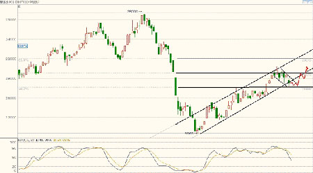 從上圖滬膠走勢圖看見,滬膠今年走勢各階段特征分明。