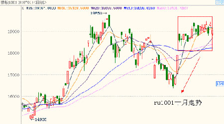 10月的天膠行情以盤整為主,受收儲消息和節后天膠價格會大幅上揚的預期影響,滬膠在國慶長假之后用一周時間從17000點的低位快速回升到19000點附近,一舉擺脫中美輪胎特保案后形成的下跌趨勢,尤其本月第一個交易日膠價高開低走,盤中逼近漲停點,著實讓大家虛驚一場。之后月內天膠則始終保持了不溫不火的盤整行情。雖然萬九大關被突破,但是前期高點的壓力使得橡膠始終沒有大的作為。