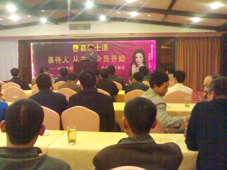 據了解,紹興縣嘉麗士漆總代理湯總做涂料生意已逾十年,期間經營過不少品牌。由于市場競爭日益激烈,這幾年他的生意總是不見大的起色。今年9月26日,在諸暨參加嘉麗士公司東南大區(qū)招商會后,湯總毅然放棄了經營兩年的某品牌,現場簽約加盟嘉麗士連鎖體系!爱敽芏嗥髽I(yè)因為金融危機收縮戰(zhàn)線的時候,有遠見、有思想的企業(yè),卻能加大對市場的投入。嘉麗士有好產品,有好的營銷思路,有好的銷售政策,有好的售后服務,加上好的執(zhí)行團隊,這樣的品牌不發(fā)展是不可能的。你們說對不對?”在會議歡迎詞中,湯總表明了自己的信心,他表示將與嘉麗士公司并肩前行,共同將嘉麗士品牌打造成紹興涂料行業(yè)第一品牌。