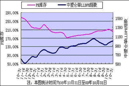 圖為PE庫存與中塑倉單LLDPE指數走勢圖。(圖片來源:中瑞金融)
