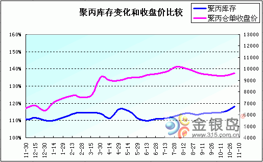 (5)聚丙烯庫存與聚丙倉單價格比較:(圖)