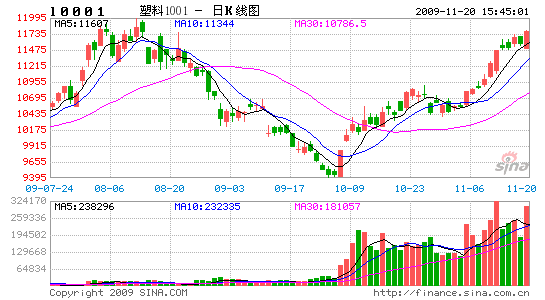 本周LLDPE放量增倉上行。主力合約L1001開于11550,盤中最高11795,最低11480,尾盤報收于11770,上漲310點,漲幅2.71%,成交量增加6萬手至119.1萬手,持倉量增加16204手至97034萬手。上游國際原油仍居高位,亞洲乙烯連續上揚,石化企業LLDPE出廠價繼續大幅上漲,現貨市場價格在高位盤整,預計LLDPE期價仍將繼續震蕩走高。