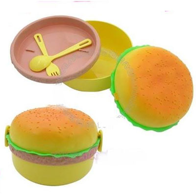 這種漢堡包最近開始受到越來越多時尚人士的喜愛,這個塑料材質的漢堡包是個飯盒。飯盒分為兩層,一層用來盛放飯菜,另一層則可以放餐具。這個專屬的飯盒非常衛生,攜帶也很方便,尤其受白領女士的青睞。