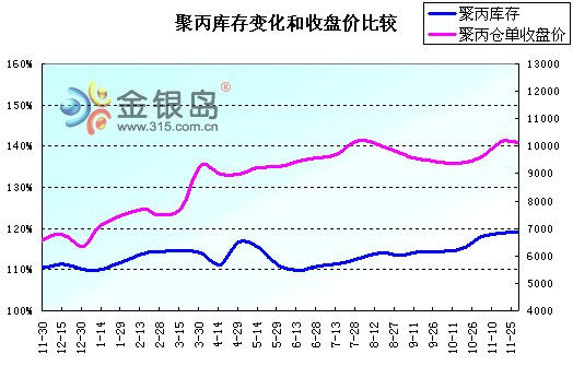 (5)聚丙烯庫存與聚丙倉單價格比較:(圖)