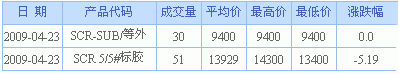 中橡網天然橡膠現貨成交行情4.23