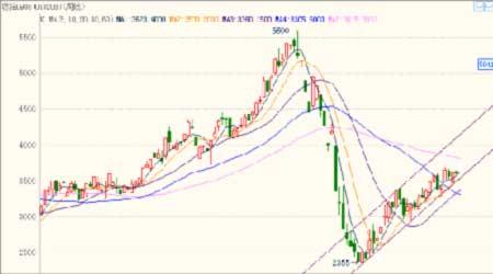 從圖形上看,燃料油自2008年11月見底后,一直運(yùn)行在如圖所示的通道內(nèi),在通道內(nèi)運(yùn)行了半年時間,中短線操作上建議接近通道下沿買入,跌破止損,在接近通道上沿時減持多單,中長線操作上建議多單長期持有,以時間換空間獲取利潤。