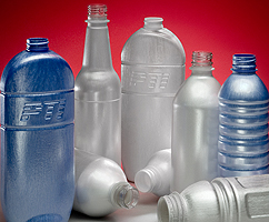 oPTI瓶結合了Trexel Inc.公司授權的Mucell微孔發泡注塑技術。其第一階段是,在一個改良的注塑機上將氮氣注射成聚合物熔料。當注射循環中空腔填補壓降后,即形成發泡。利用加工條件來控制孔的擴大。PTI介紹說,然后在未改良的傳統吹塑機上吹塑成預成型件。