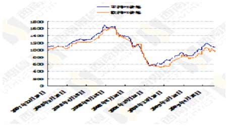 上游價格受到下游PTA和聚酯市場下跌的打擊繼續回落,這徹底瓦解了前期依靠成本支撐的PTA價格。亞洲PX跌至1060美元FOB韓國,本周累計跌幅為30美元;歐洲PX跌破1000美元至950美元FOB鹿特丹。 5月以來PX供應緊張的局面有所緩解,因此幾套PTA停產的裝置恢復運行,當前逸盛大連75萬噸裝置、BP珠海90萬噸裝置已正常開工,烏魯木齊的100萬噸/年芳烴裝置即將投入生產,上海石化60萬噸將在第三季度投產,來自前期PTA供應方面的壓力逐步消退。下游江浙長絲產銷整體低迷,多數工廠產銷率為5-7成,部分產銷率較低僅為4成,個別工廠促銷力度較大。而市場成交價格重心仍有下滑跡象,POY絲報價下調,幅度在100-300元/噸左右。 廣交會的成交數據代表了未來6個月的出口訂單情況,在同比環比均下滑的訂單情況可以看出未來第三季度的出口形勢依舊難以好轉。而紡織行業的季節性因素將在5、6月份對聚酯行業起到關鍵性的影響。 從具體數據看,下游滌絲市場看淡情緒明顯,產銷在持續低迷數日后有所回升但仍顯不強。總體來看,上游原料PX價格下滑,下游切片、長絲、短纖價格處在弱市調整之中,在上下游兩面夾擊下PTA價格受到打壓。