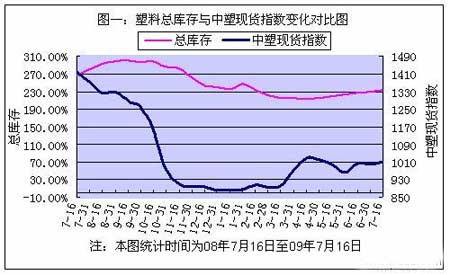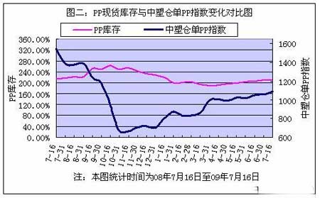 09年7月上半月國內PP、PE主要市場總庫存整體出現增加,較09年6月30日增幅在1.54%。其中PP庫存出現小幅增加,較上月底增幅在1.03%,PE庫存出現小幅增加,較上月底增幅在1.65%。區域來看,南方庫存小幅減少,較上月底減幅在1.01%,而北方庫存大幅增加,較上月底增幅在8.42%。 以下是庫存變化走勢圖: