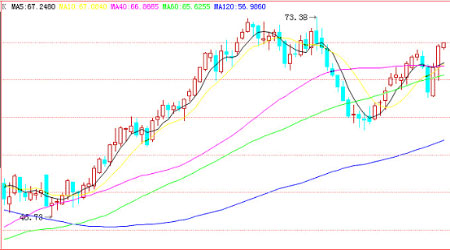 由原油價格的走勢圖可以看出,原油價格在7月經歷了先下跌后上漲的行情,6月份油價一度站穩70美元上方,但隨后由于各項經濟數據存在不穩定因素,原油價格也在月中一度下破60美元;而在本月下旬,受美元疲弱以及經濟前景被普遍看好的影響,油價又大幅反彈。