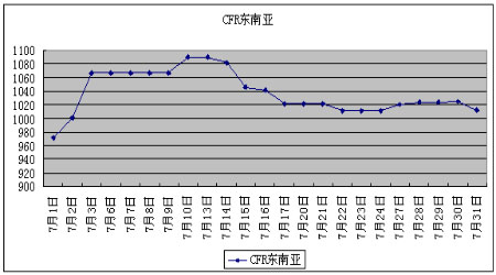 伊朗的乙烯供應自6月份以來處于停車狀態,使得亞洲乙烯供應略顯緊張,本月亞洲乙烯價格突破1000美元/噸,下旬在伊朗的一系列裝置運行正常后,來自伊朗的供應也逐漸正;,其價格也出現了小幅回調。