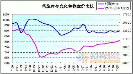 圖為線性庫存與收盤價比較圖。(圖片來源:金銀島網交所)