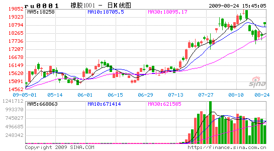 表1、上海期貨交易所天然橡膠周成交數據表(20090810-20090814)