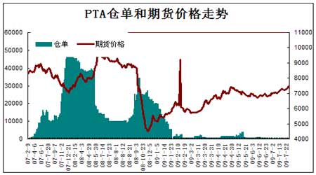 截止7月24日鄭商所公布的數(shù)據(jù)顯示PTA的注冊倉單為396張,比六月底的478漲小幅減少了82張。
