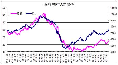 圖為原油與PTA走勢圖。(圖片來源:中瑞金融)