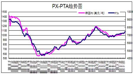 圖為PX-PTA趨勢圖。(圖片來源:中瑞金融)