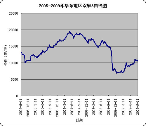 2005-2009年華東雙酚A市場趨勢圖