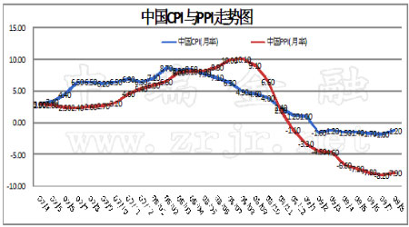 圖為中國CPI與PPI走勢圖。(圖片來源:中瑞金融)