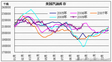 圖為美國汽油庫存走勢圖。(圖片來源:北京中期)