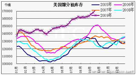 圖為美國餾分油庫存走勢圖。(圖片來源:北京中期)