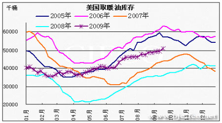圖為美國取暖油庫存走勢圖。(圖片來源:北京中期)