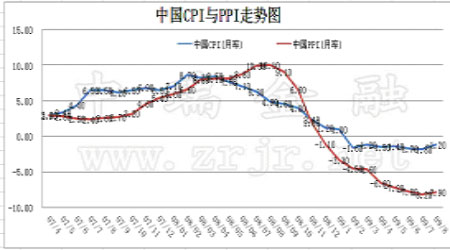 圖為中國CPI與PPI走勢圖。(圖片來源:中瑞金融)