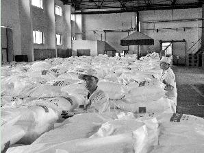 吉林石化聯(lián)力公司抓住聚乙烯蠟產(chǎn)品市場(chǎng)銷(xiāo)售形勢(shì)良好的契機(jī),對(duì)聚乙烯蠟裝置包裝生產(chǎn)線實(shí)施技術(shù)改造,將手動(dòng)包裝線改造成半自動(dòng)包裝錢(qián),使生產(chǎn)效率提高一倍,同時(shí)使員工勞動(dòng)強(qiáng)度降低了50%。圖為員工正在檢查新包裝線下線產(chǎn)品的包裝質(zhì)量。