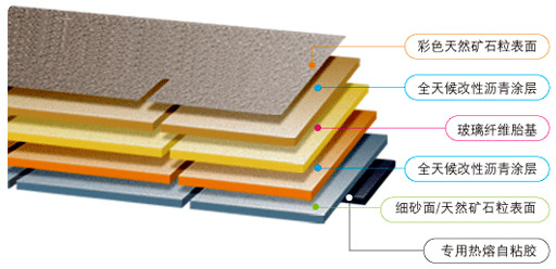 玻纖增強瀝青瓦的層次結構