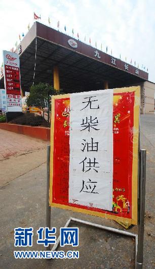 10月21日,江西九江一加油站入口處擺出無柴油供應的牌子。自10月9日成品油價格調降之后,江西多個地區柴油供應出現異動,一些私營加油站出現了無柴油供應的現象,中石化、中石油加油站也開始限量加油,市場再發“油荒”信號。新華社發(胡國林 攝)