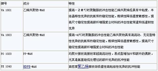 表格1 埃克森美孚馬來酸酐接枝物ExxelorTM的典型應用