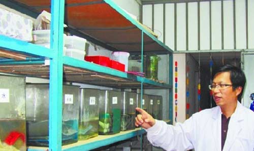 黃教授在實(shí)驗(yàn)室內(nèi)介紹實(shí)驗(yàn)過(guò)程