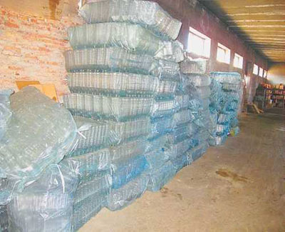 10月20日,龍鳳公安分局查封了一家利用廢舊回收塑料,生產水瓶的黑工廠,查扣未銷售的水瓶4萬多個,現場還查扣了大量“榆樹林”和“慶新油田”商標。