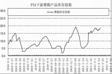 從圖八中,可以發現一季度,聚酯產品價格在PTA成本的推動下,再度呈現漲勢。聚酯工廠利潤空間被PTA成本侵蝕,PTA下游聚酯工廠開工負荷維持在高位,對PTA的需求量保持在高位。1季度的上漲行情中,聚酯工廠庫存水平受春節和春節后終端紡織市場需求低迷影響,庫存量在節后達到了年內高位,因成本堅挺,聚酯產品價格維持在高處,但聚酯產品的開始明顯滯銷,短期內對PTA期價的進一步上漲形成拖累,導致PTA期現貨價格在2-3月份始終維持在高位震蕩,上行乏力。