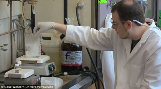 來自凱斯西儲大學(xué)的研究人員們正在演示他們研制這種新型自我修復(fù)塑料的過程