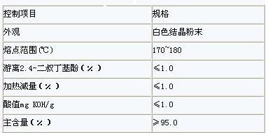 用途:本品是一種高性能固體有機亞磷酸酯抗氧劑,對聚合物的色澤有良好的保護作用,優(yōu)于其它亞磷酸酯,一般不單獨使用,經(jīng)常與抗氧劑1010等酚類主抗氧劑復合使用,能提高聚合物加工過程的熱穩(wěn)定性。本品與酚類抗氧劑復配后廣泛用于PE、PP、PS、聚酰胺、聚碳酸酯、ABS等高分子材料。