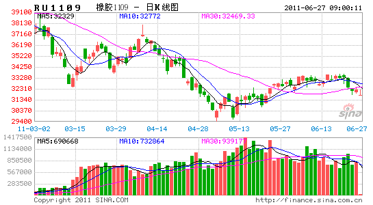三、后市基本面偏空夏季輪胎生產(chǎn)淡季來臨以及新膠的不斷上市令滬膠基本面保持弱勢,受到上方均線的強(qiáng)力壓制,期價今日無力承壓大幅下挫。從天膠自身看來,國內(nèi)外產(chǎn)區(qū)生產(chǎn)正常并沒有受到自然災(zāi)害的影響,泰國、印尼等的天膠供應(yīng)不斷增加,供需呈現(xiàn)偏空的局面。IRSG在近期報告中指出,2010年天膠供應(yīng)增速為6.1%,需求增速為14.4%;而2011年供應(yīng)增速穩(wěn)定在6.2%,需求增速快速下滑至4.6%。考慮到基本面情況變化的慣性力量更大,因此今年出現(xiàn)前期般供應(yīng)緊張導(dǎo)致價格上漲的機(jī)會不大。基本面上天膠依舊偏弱。但是本周連續(xù)兩天的大幅下跌可能會迎來小幅反彈,前期空單適當(dāng)了結(jié),操作上日內(nèi)為主。