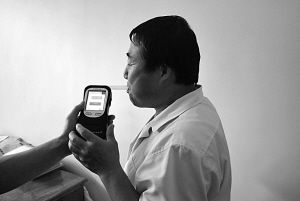 五蓮農(nóng)業(yè)局一工作人員接受酒精測(cè)試
