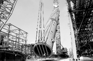 8月20日,廣州石化煉油廠200萬(wàn)噸/年柴油加氫裝置反應(yīng)器成功吊裝就位。該反應(yīng)器是廣州石化所有生產(chǎn)設(shè)備中最重的大型設(shè)備,高41米、壁厚190毫米、內(nèi)壁直徑50毫米、總重830噸,由中國(guó)石化第四建設(shè)公司承擔(dān)吊裝施工。 圖為該廠反應(yīng)器吊裝現(xiàn)場(chǎng)。