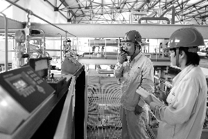 由吉林石化研究院承擔的國家科技支撐計劃項目國內首套千噸級異戊橡膠中試裝置設備安裝工作已全部完成并通過驗收,目前正在進行水聯動試車工作。 圖為8月31日科研人員在對催化劑單元配重數據與DCS控制中心進行對照。