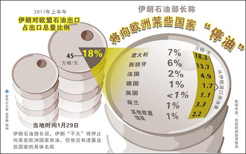 1月23日歐盟外長會議通過針對伊朗的石油禁運令,禁止成員國從伊朗進口石油并對伊朗中央銀行實施制裁。作為回應,29日伊朗表示打算停止向歐盟供應石油5年至15年,并再次揚言封鎖海上石油運輸重要關卡霍爾木茲海峽。