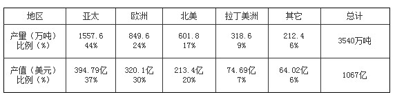 2011年全球涂料地區銷售