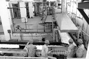 近日,齊魯石化橡膠廠新建成的第三條順丁橡膠生產(chǎn)線順利開(kāi)車,產(chǎn)出合格產(chǎn)品。該生產(chǎn)線是在原有順丁裝置的基礎(chǔ)上擴(kuò)建的,從今年元月份開(kāi)始施工,投產(chǎn)后該廠順丁橡膠年產(chǎn)量將從五萬(wàn)噸提高到七萬(wàn)噸。圖為新投產(chǎn)的順丁橡膠生產(chǎn)線。
